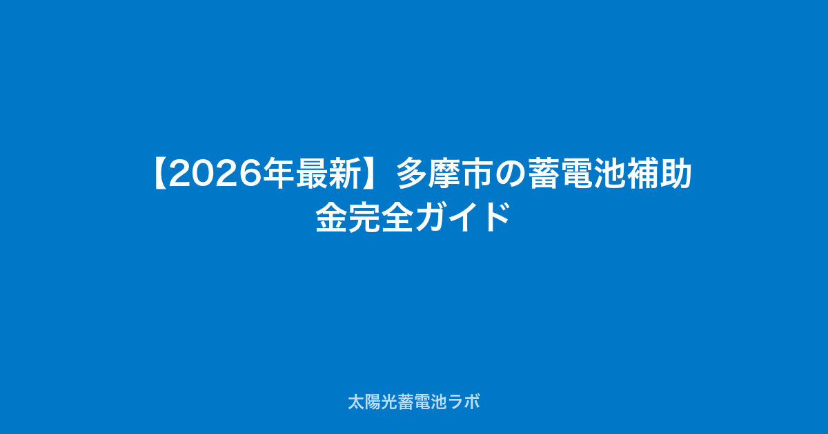 多摩市では「多摩市住宅用新エネルギー機器等普及促進補助金」により、蓄電池設置に対して独自の補助を実施しています。2026年度は1件あたり一律10万円の補助額が設定されています。出典: 多摩市公式サイト